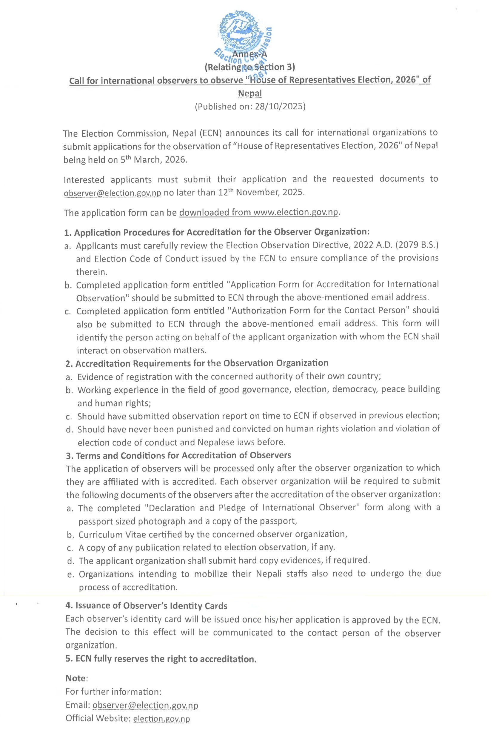 Call for international observers to observe "House of Representatives Election, 2026" of Nepal